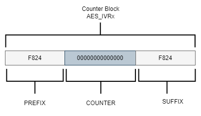 • (AES_IVRx): In CTR mode, the initialization vector is also referred to as the counter, which we will identify as the Nonce.